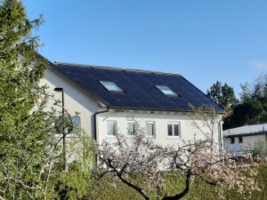 - ca. 21 kWp Indach-Photovoltaik Anlage (72 Module) + 2 kWp PV am Geländer